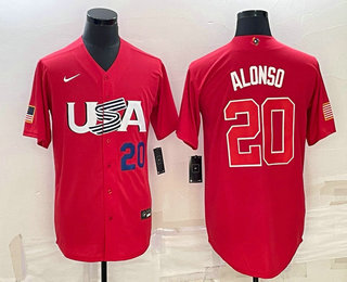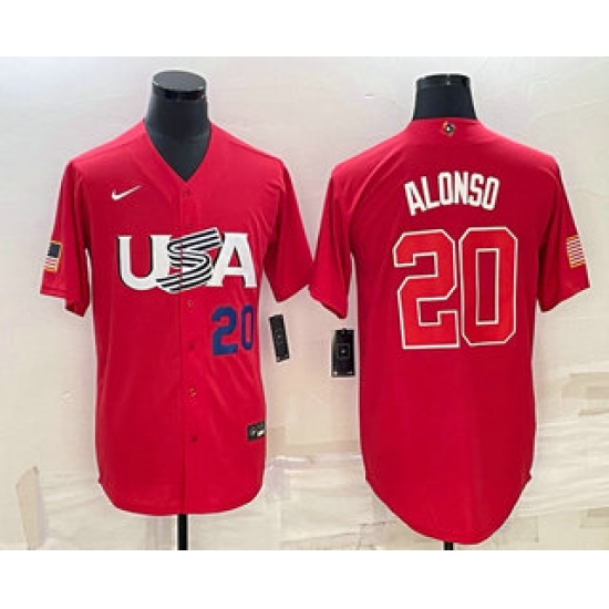 - Men USA Baseball #20 Pete Alonso 2023 Red World Classic Stitched Jerseys