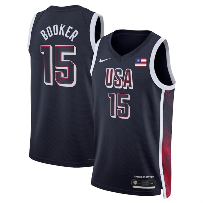 - Men USA Basketball 15 Devin Booker Navy 2024 Swingman Stitched Jersey
