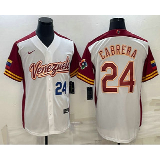 - Men Venezuela Baseball #24 Miguel Cabrera 2023 White World Classic Stitched Jersey