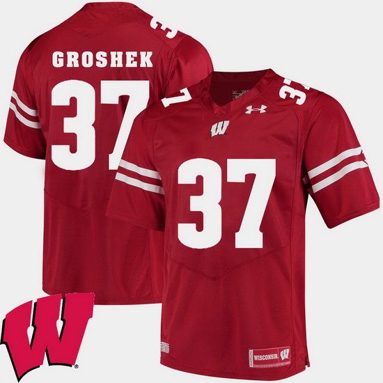 - Men Wisconsin Badgers Garrett Groshek Premier Red Football Jersey