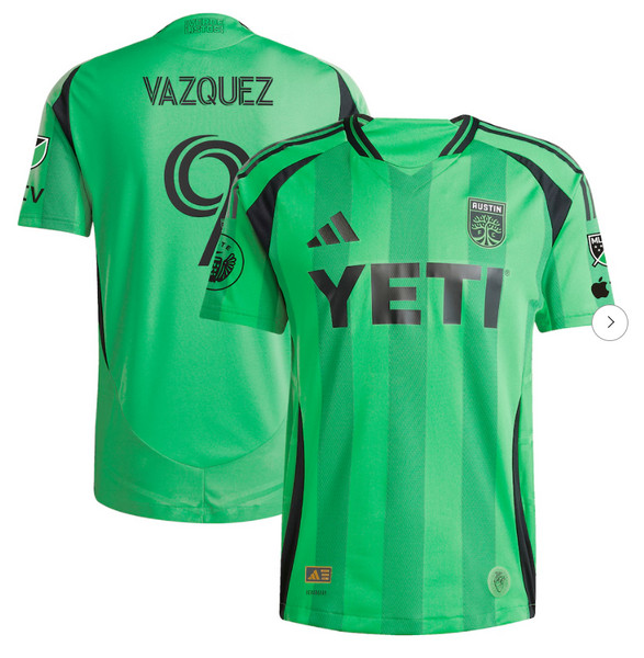 - Mens Austin FC Brandon Vazquez adidas Green 2025 The Heartbeat Kit Authentic Player Jersey