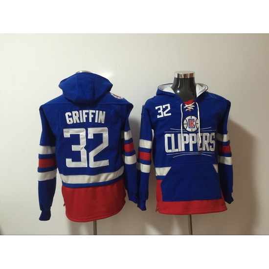 - Men Los Angeles Clippers Blank Black Blue Lace Up Pullover Hoodie