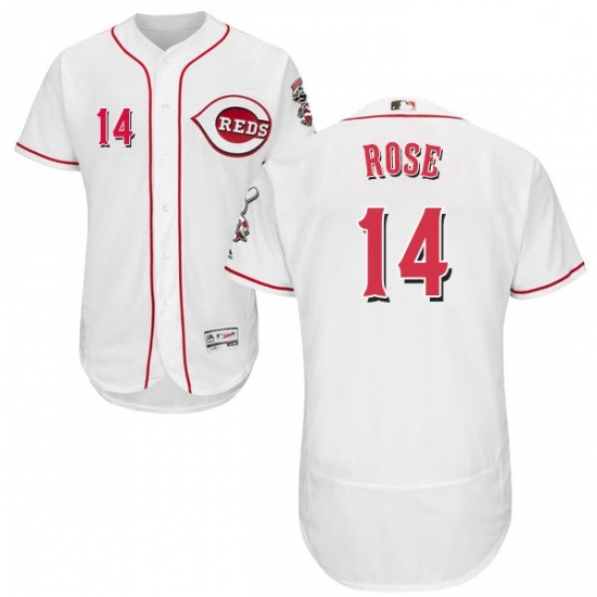 - Mens Majestic Cincinnati Reds 14 Pete Rose White Home Flex Base Authentic Collection MLB Jersey