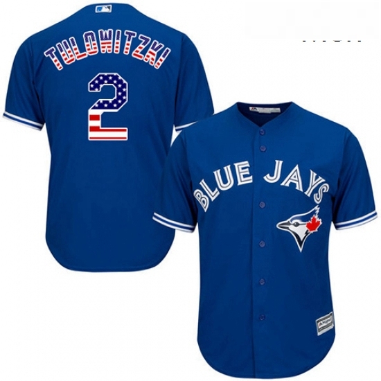 - Mens Majestic Toronto Blue Jays 2 Troy Tulowitzki Replica Royal Blue USA Flag Fashion MLB Jersey