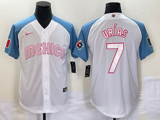 - Men's Mexico Baseball #7 Julio Urias 2023 White World Baseball Classic Stitched Jerseys IX