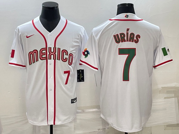 - Men Mexico Baseball 7 Julio Urias 2023 White Blue World Baseball Classic Stitched Jersey