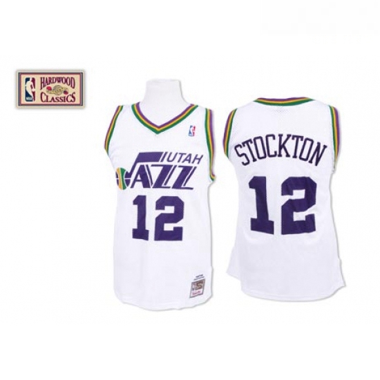 - Jazz 12 John Stockton White Hardwood Classics Jersey