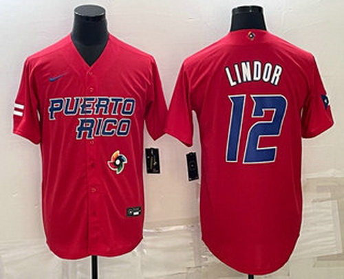 - Men's Puerto Rico Baseball #9 Javier Baez 2023 Red World Baseball Classic Stitched Jersey