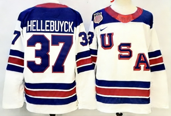- Men USA 37 Connor Hellebuyck Home White 2026 Olympic Hockey Jersey