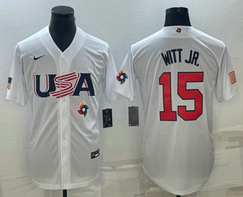 - Men USA Baseball #15 Bobby Witt Jr 2023 Red World Baseball Classic Stitched Jersey