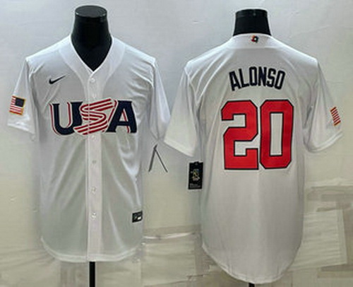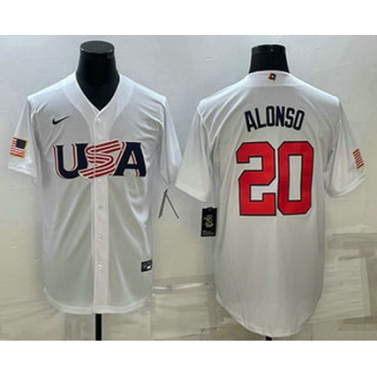 - Men USA Baseball #20 Pete Alonso Number 2023 Red World Classic Stitched Jersey 3