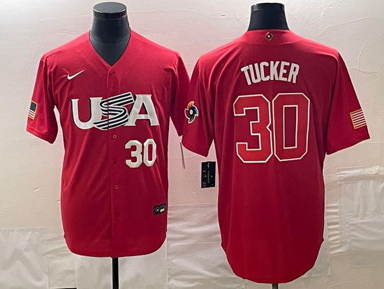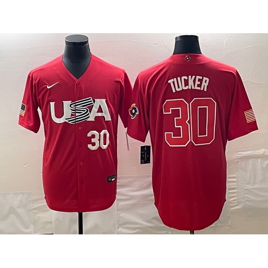 - Men's USA Baseball #30 Kyle Tucker 2023 Red World Classic With Patch Stitched Jersey