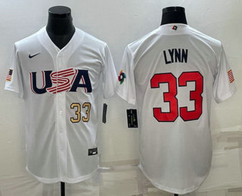 - Mens USA Baseball #33 Lance Lynn Number 2023 White World Baseball Classic Stitched Jersey