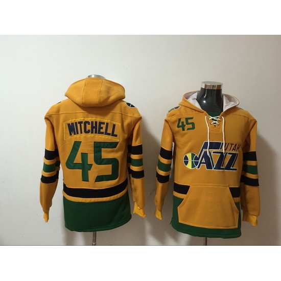 - Men Utah Jazz 12 John Stockton Navy Yellow Lace Up Pullover Hoodie