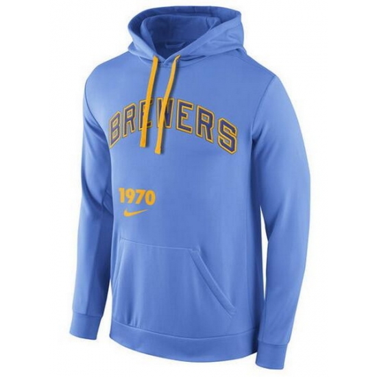 - MLB Men Nike Milwaukee Brewers Pullover Hoodie NavyGrey