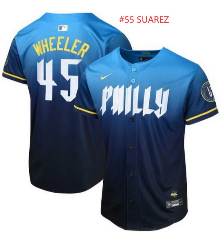 - Men Philadelphia Phillies 55 Ranger Suarez Blue Cool Base Stitched Jersey 2
