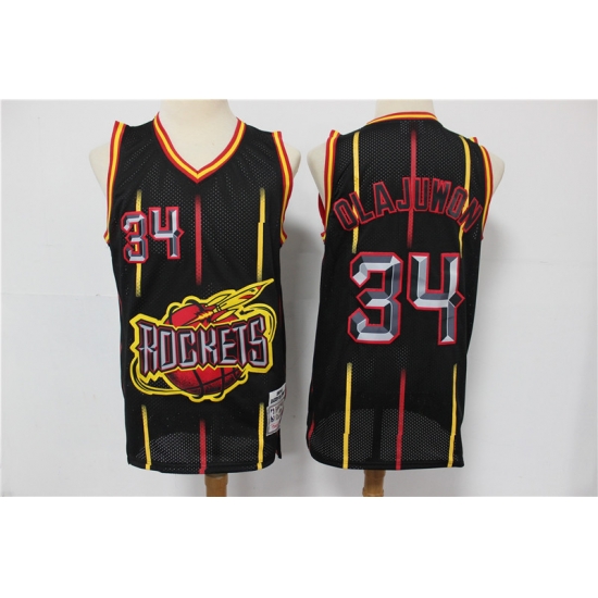 - Rockets 34 Hakeem Olajuwon Red Throwback Stitched NBA Jersey