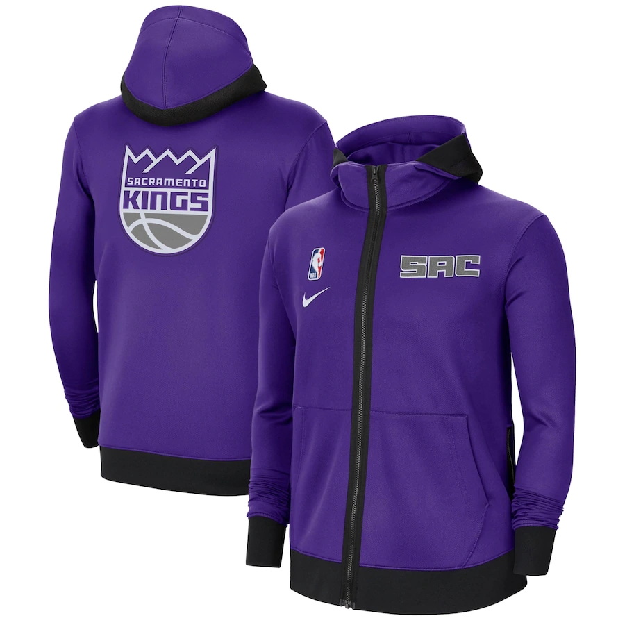 - Men Nike Sacramento Kings Purple Authentic Showtime Therma Flex Performance Full Zip Hoodie