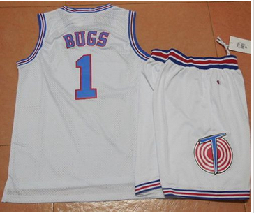 - Space Jam Tune Squad #1 Bugs Bunny White Movie Stitched Basketball Jersey