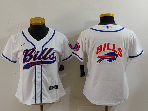 - Women Buffalo Bills White Team Big Logo With Patch Cool Base Stitched Baseball Jersey 5