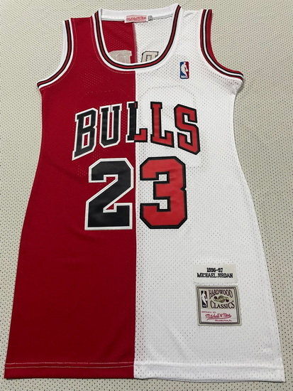 - Women Chicago Bulls 23 Michael Jordan Dress Stitched Jersey Red Black Split