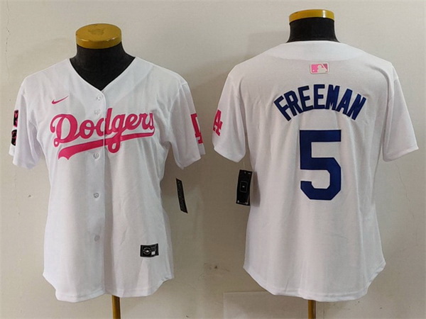 - Women Los Angeles Dodgers 7 White Pink Vin 26 Kobe Patch Stitched Baseball Jersey