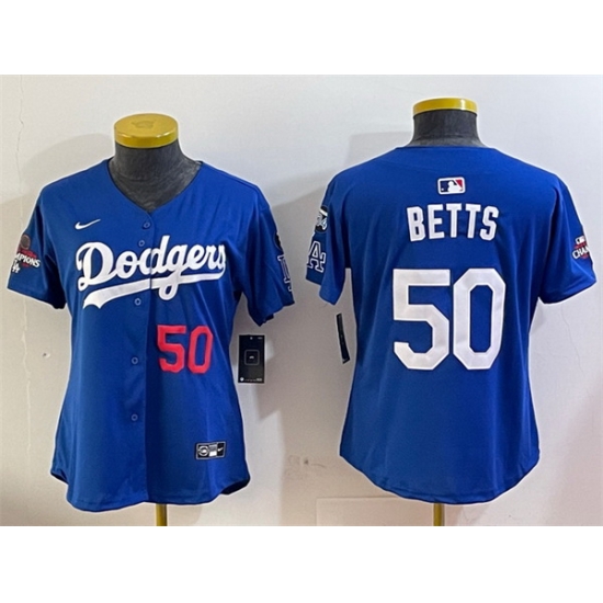 - Women Los Angeles Dodgers 50 Mookie Betts Cream Stitched Jersey 9