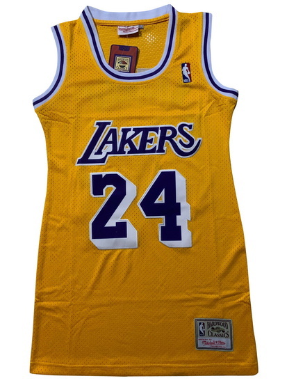 - Women Los Angeles Lakers 24 Kobe Bryant Dress Stitched Jersey Yellow Purple Split