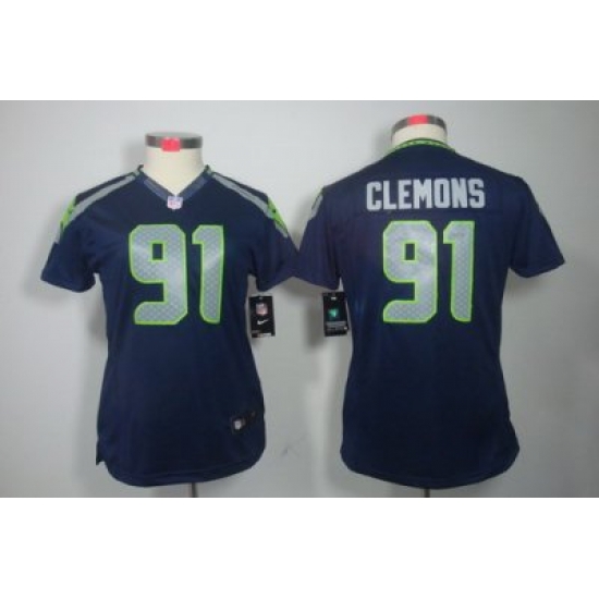 - Women Nike Seattle Seahawks #91 Chris Clemons Grey Color NFL LIMITED Jerseys