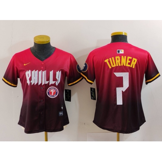 - Women Philadelphia Phillies 7 Trea Turner Cream Cool Base Stitched Baseball Jersey