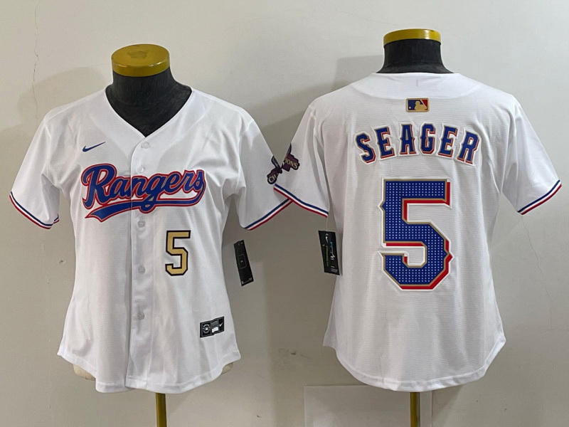 - Women Texas Rangers 5 Corey Seager Blue With Patch Stitched Baseball Jersey 28Run Small 29