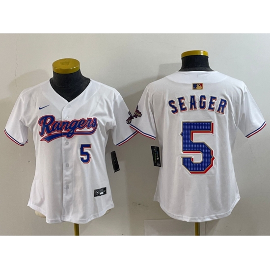 - Women Texas Rangers 5 Corey Seager White Gold Stitched Baseball Jersey