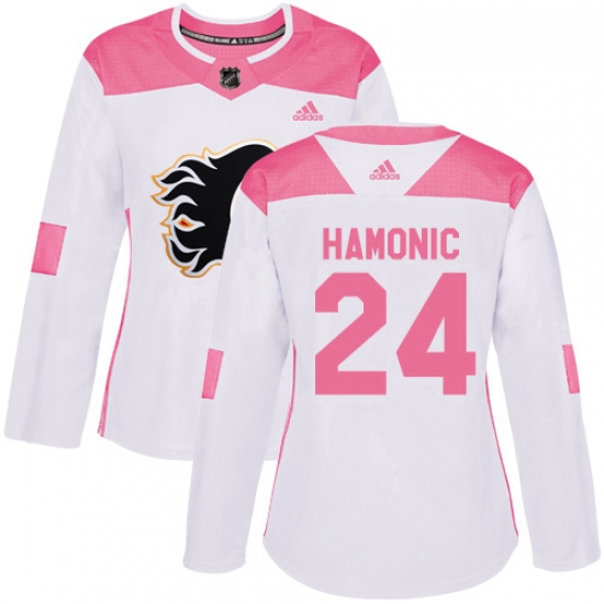 - Womens Adidas Calgary Flames 24 Travis Hamonic Authentic Red Home NHL Jersey