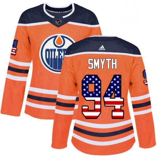 - Womens Adidas Edmonton Oilers 6 Adam Larsson Authentic Orange USA Flag Fashion NHL Jersey