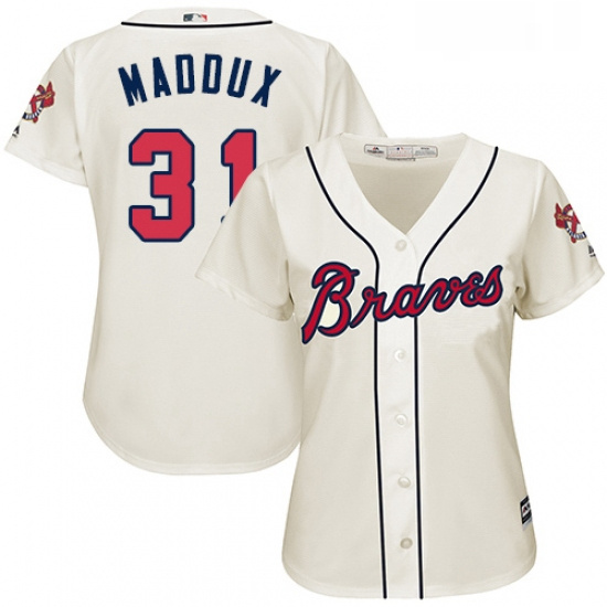 - Womens Majestic Atlanta Braves 31 Greg Maddux Authentic Cream Alternate 2 Cool Base MLB Jersey