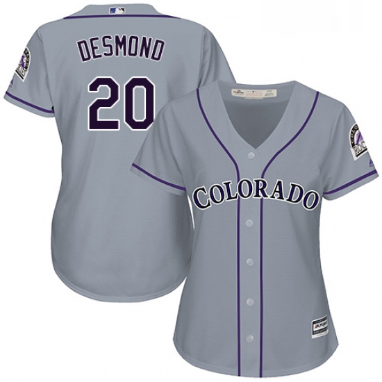 - Womens Majestic Colorado Rockies 20 Ian Desmond Replica Grey Road Cool Base MLB Jersey