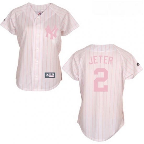 - Womens Majestic New York Yankees 2 Derek Jeter Replica WhitePink Strip MLB Jersey
