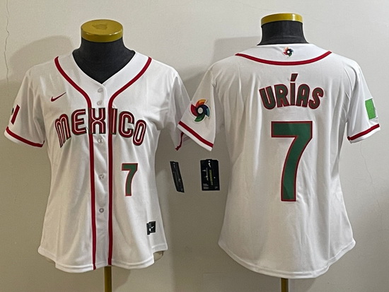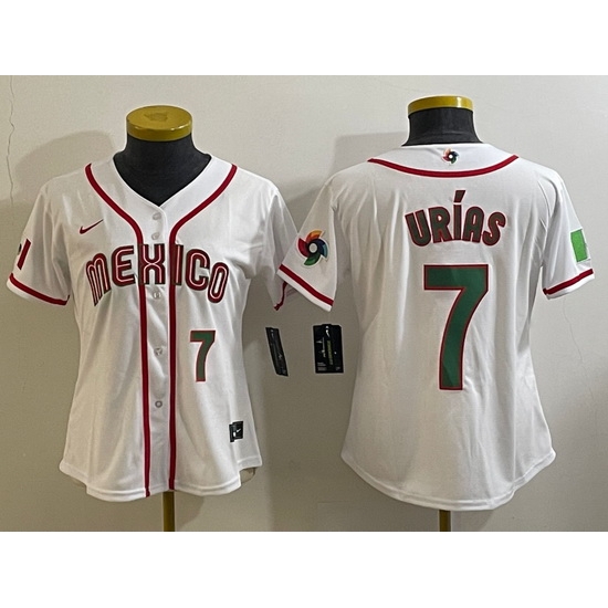 - Women's Mexico Baseball #7 Julio Urias Number 2023 White World Classic Stitched Jersey