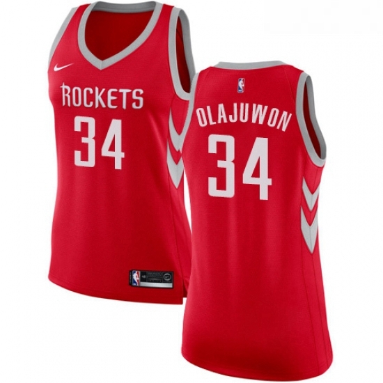 - Womens Nike Houston Rockets 34 Hakeem Olajuwon Authentic Red Road NBA Jersey Icon Edition