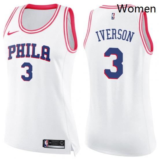 - Womens Nike Philadelphia 76ers 3 Allen Iverson White Swingman Jersey Earned Edition