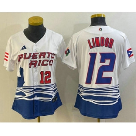 - Womens Puerto Rico Baseball 12 Francisco Lindor 2023 White World Classic Stitched Jersey