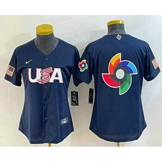 - Women's USA Baseball 2023 Navy Big Logo With Patch World Classic Stitched Jersey