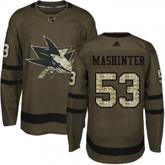 - Youth Adidas San Jose Sharks 68 Melker Karlsson Authentic Green Salute to Service NHL Jersey