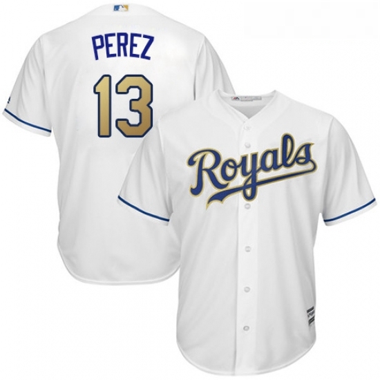 - Youth Majestic Kansas City Royals 13 Salvador Perez Authentic White Home Cool Base MLB Jersey