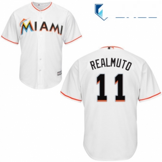 - Youth Majestic Miami Marlins 11 J T Realmuto Replica Grey Road Cool Base MLB Jersey