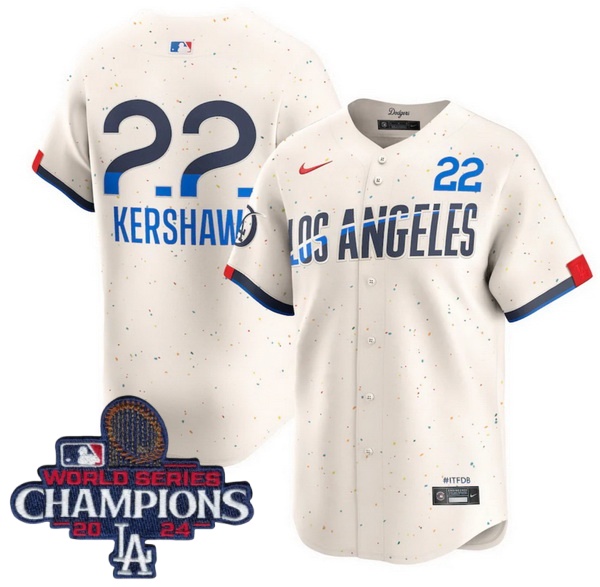 Youth Nike Los Angeles Dodgers Clayton Kershaw #22 Ice Cream 2024 World Series Champions Stitched MLB Jersey