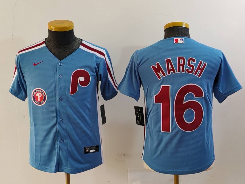 - Youth Philadelphia Phillies 28 Alec Bohm Blue Cool Base Stitched Baseball Jersey 1