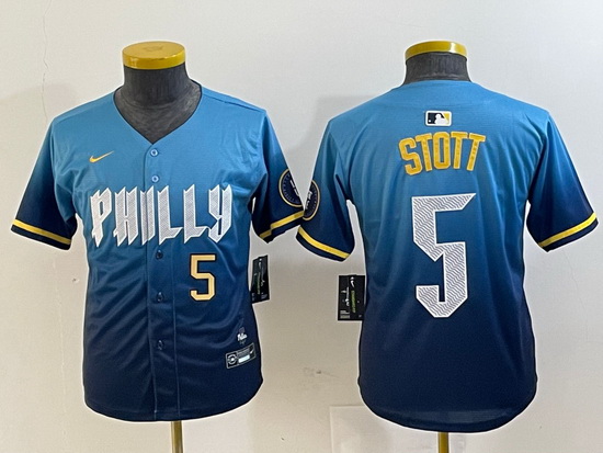 - Youth Philadelphia Phillies 7 Trea Turner Blue 2024 City Connect Limited Stitched Jersey 3