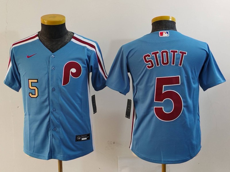 - Youth Philadelphia Phillies Team Big Logo Blue Cool Base Stitched Baseball Jersey 5