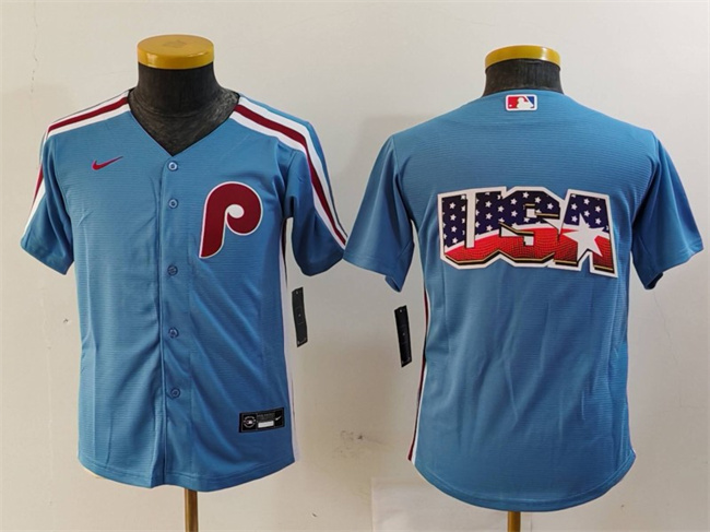 - Youth Philadelphia Phillies 55 Ranger Suarez Blue Cool Base Stitched Baseball Jersey 9